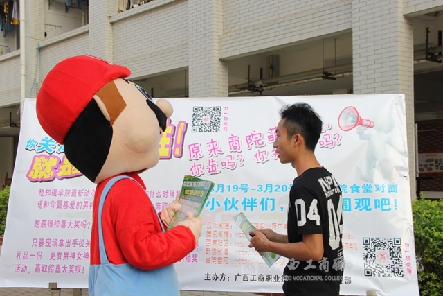 3月19日中午12點,活動正式開始,新聞中心學生部的成員穿著動漫人物"馬里奧”的衣服在活動現(xiàn)場一會兒發(fā)傳單,一會兒跑去“招攬顧客”,一會兒又跳舞…吸引了不少同學跑來合影,同學們紛紛拿出手機掃描海報上的二維碼,并參與了抽獎活動,其中有幾位抽到了大獎的同學還高興的拿著獎品拍照留念!