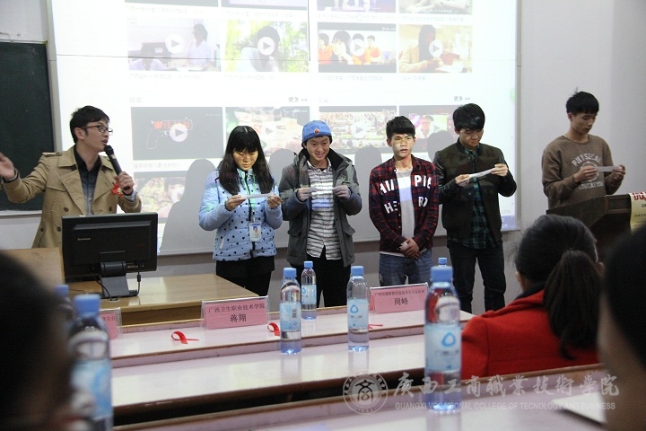 2015年1月9日下午,我院黨委宣傳部粟蘭惠、李蓉榮、曾小峰、梁禮娜等四名同學(xué)代表,參加了在廣西中醫(yī)藥大學(xué)召開的廣西高?!胺腊贝笮拖盗行麄骰顒?dòng)——微電影創(chuàng)作培訓(xùn)班及志愿者工作會(huì)議。參加培訓(xùn)班的還有來(lái)自廣西各個(gè)高校的老師和同學(xué)。