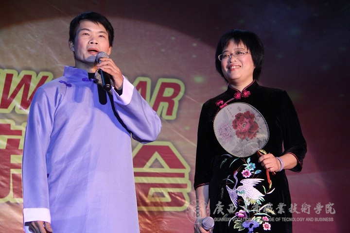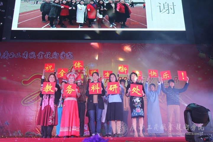 現(xiàn)場華燈璀璨,熱鬧非凡。晚會伊始,主持人向大家介紹了到場的學院領(lǐng)導、嘉賓及教師等,接著由黨委書記覃武云做新年賀辭,他代表學院黨委向全體師生致以誠摯的問候和新年美好祝福。