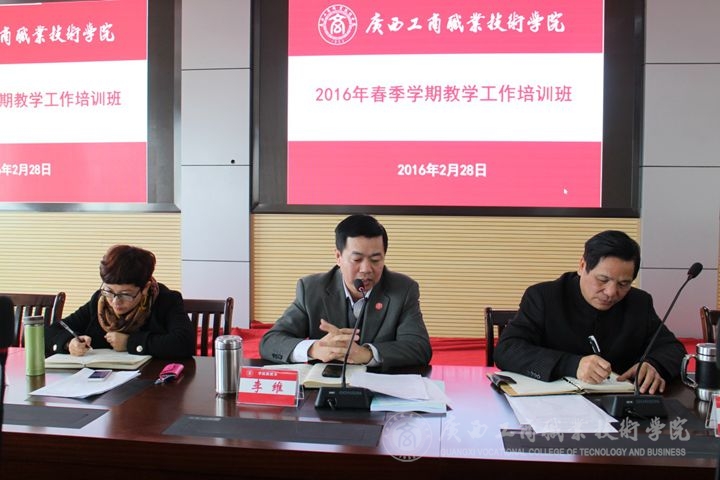 培訓班首先由教務科研處韋勝強處長對2016年度教學、科研、招生工作進行了布置。韋處長主要從加強服務社會能力,突出教學中心地位,更加規(guī)范教學管理工作、突出人才培養(yǎng)改革創(chuàng)新,不斷提升教學質量,進一步優(yōu)化教師隊伍結構,加強校企合作,深化產(chǎn)教深度融合,加大科研工作力度等方面對2016年教學工作目標與任務進行了闡述。