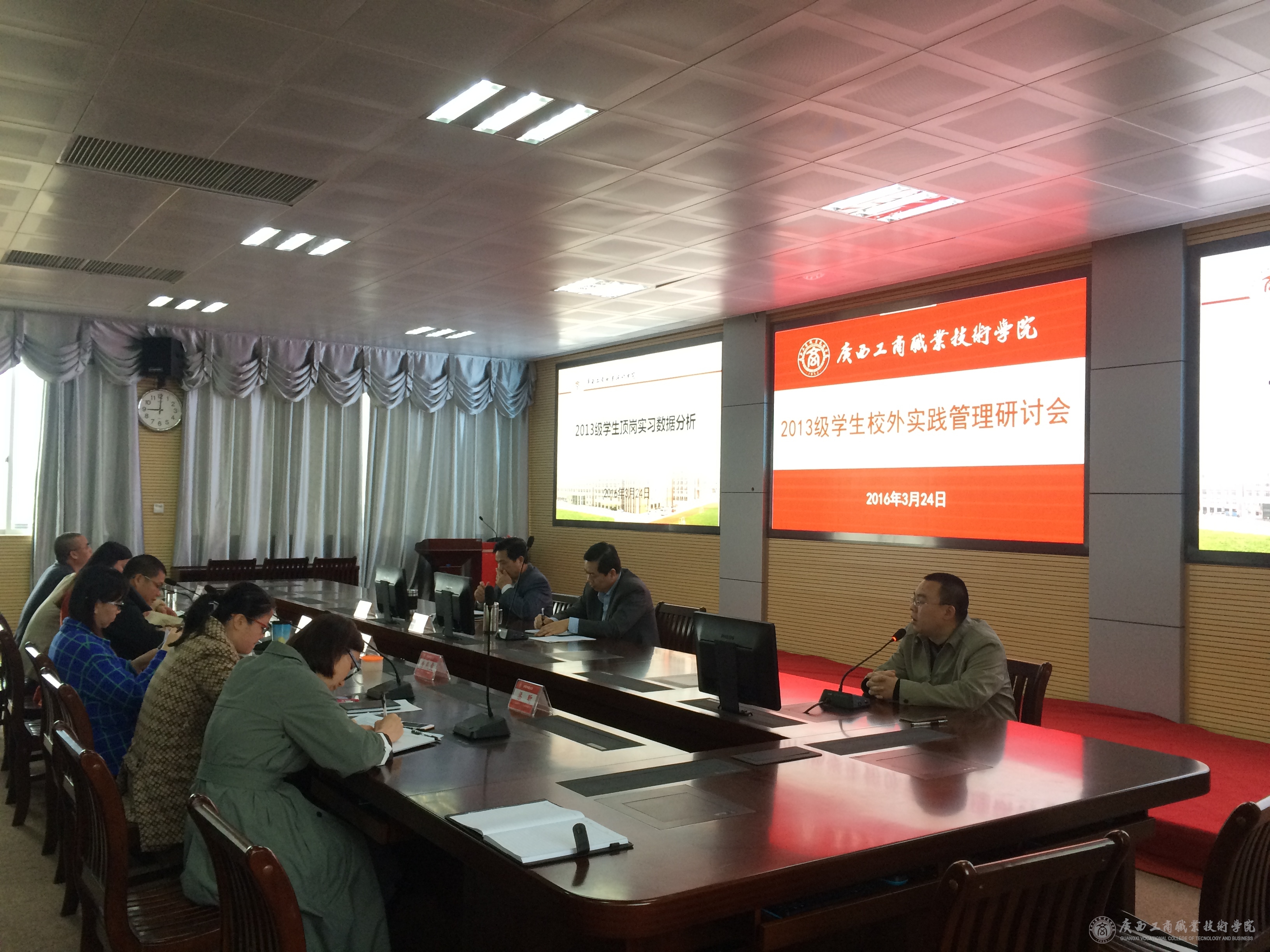 2016年3月24日上午,教務科研處處長韋勝強在校本部2119會議室主持召開了2013級學生校外實踐管理研討會,學院李維副院長、黨委學生工作部及各系部相關(guān)負責人,教務科研處有關(guān)人員出席了會議。
