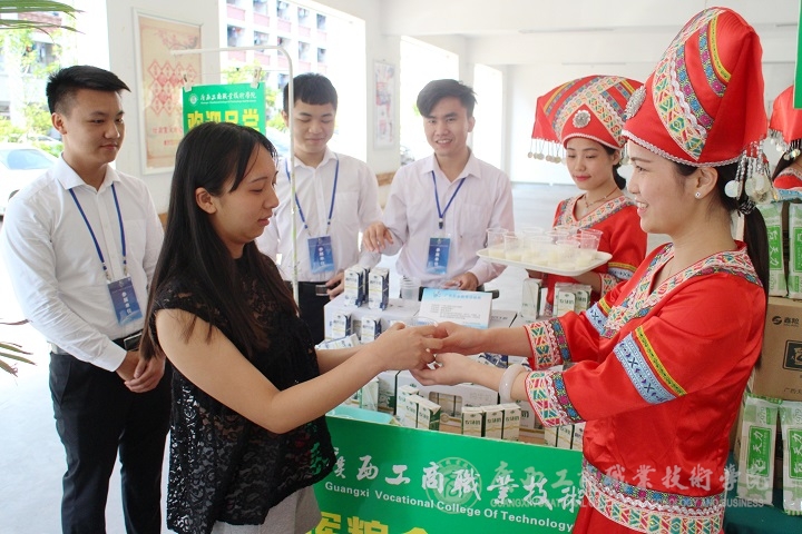 現(xiàn)場還有財信系廣告與設(shè)計、食品檢測專業(yè)展出的糧食加工與包裝設(shè)計作品展。食品檢測專業(yè)的同學(xué)向大家展示了既營養(yǎng)又安全的面包、紅酒、餅干,廣告與設(shè)計專業(yè)的同學(xué)向大家展示了以五谷雜糧為主要材料的圖畫。尤具特色的是:活動中呈現(xiàn)的全部作品都是由學(xué)生們親手制作?,F(xiàn)場接受采訪的同學(xué)告訴記者,同學(xué)們參加此次活動是為了響應(yīng)國家的號召,展示我院食檢專業(yè)的技能特色,她們表示:廣西區(qū)很多院校的職業(yè)技能展示以及發(fā)展的程度,跟國際上還有一定的差距,大家決心要繼續(xù)努力,將食檢專業(yè)的技能發(fā)展得更好。