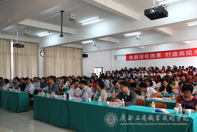 ??????? 2015年4月25號上午9點30分,"廣西職業(yè)院校營銷類專業(yè)改革與創(chuàng)新研討會”在我院校本部2143報告廳召開,蒞臨我校參加研討會的有各行業(yè)、企業(yè)專家,財經類職業(yè)院校領導、經濟管理類系主任、營銷類專業(yè)負責人,市場營銷大賽領隊、指導老師。此外,參加此次大會的還有我校財經類的教師們。