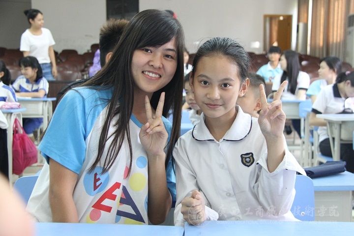 (小學生與我院學子合影)