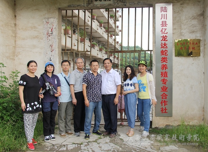 (慰問(wèn)團(tuán)隊(duì)在蛇類養(yǎng)殖處合影留念)