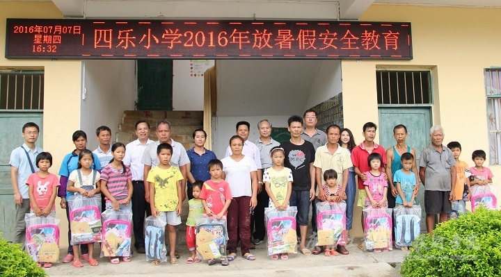 (慰問(wèn)團(tuán)隊(duì)與四樂(lè)小學(xué)孩子合影)