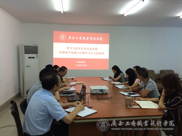 ??????? 與此同時(shí),宣傳部與現(xiàn)教中心黨支部、教務(wù)科研處、財(cái)務(wù)處、會(huì)計(jì)系、經(jīng)管系、財(cái)信系、公共基礎(chǔ)部分別在廣商院2223、學(xué)術(shù)廳、2327、2224、2318、2219等教室和辦公室對(duì)習(xí)總書記的“七一”重要講話進(jìn)行學(xué)習(xí)探討。其中,在2223教室,韋勝?gòu)?qiáng)部長(zhǎng)圍繞八個(gè)“不忘初心、繼續(xù)前進(jìn)”與與會(huì)黨員同志進(jìn)行交流學(xué)習(xí)。他提出,習(xí)近平總書記重要講話中談及青年并給予了厚望,表明了黨對(duì)我國(guó)青年的關(guān)心和關(guān)注,這鼓舞著我院青年教師的成長(zhǎng)。在2219教室,公共基礎(chǔ)部張居設(shè)主任圍繞“立足崗位,開拓進(jìn)取”,就“三十個(gè)要點(diǎn)”為大家闡述中國(guó)共產(chǎn)黨開天辟地的大事件,鼓舞在場(chǎng)的黨員教師們奮發(fā)前行。