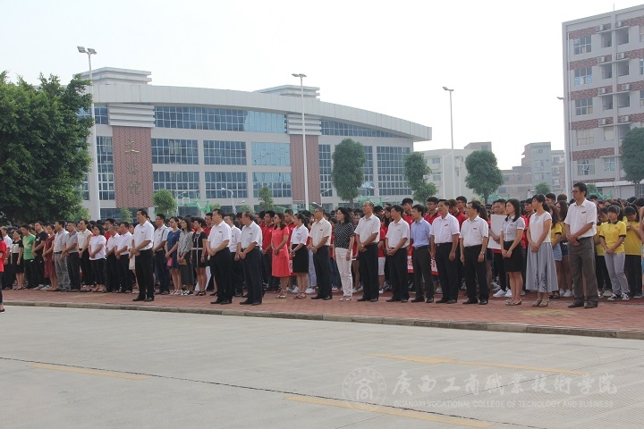 嶄新的晨光,迎來新的開始,8月29號上午7點50分,廣西工商職業(yè)技術(shù)學(xué)院于升旗臺舉行本學(xué)期期第一次升旗儀式。學(xué)院黨委書記覃武云、院長陳杰、黨委副書記蒙啟成及其他學(xué)院領(lǐng)導(dǎo),各部門、各系年級輔導(dǎo)負責人,2015級全體學(xué)生參加了升旗儀式。儀式由學(xué)院黨委副書記蒙啟成主持。