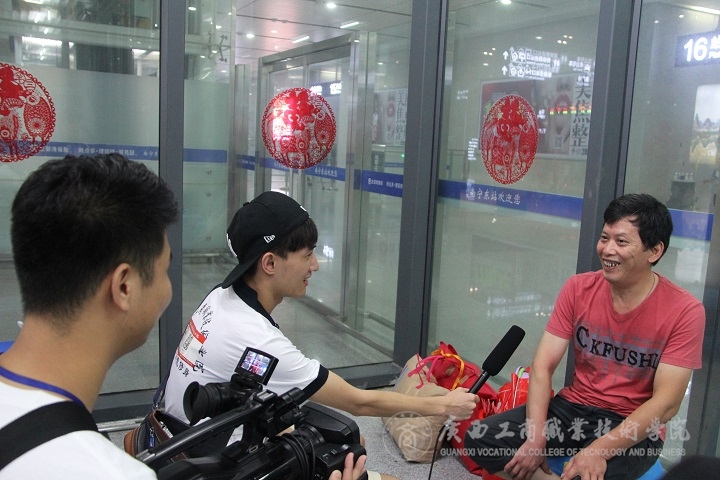 新聞中心學(xué)生記者蒙顯倫:欽州的動(dòng)車過(guò)來(lái)也挺快的,那你是一個(gè)人過(guò)來(lái)嗎?一個(gè)人來(lái)學(xué)校報(bào)名,在路上沒(méi)人照顧,搬行李,會(huì)不會(huì)覺(jué)得孤單?