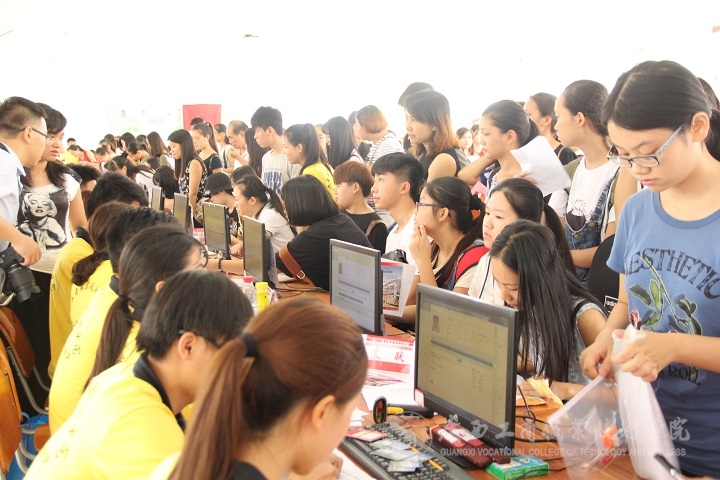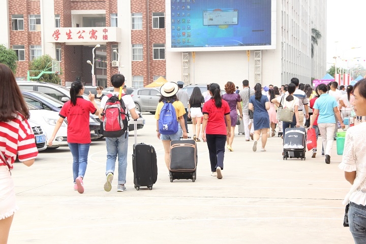 比這一切,更加鮮活熱烈的,是一張張新生們明麗的臉龐。在校門口到教學(xué)樓的這段路上,新同學(xué)們或三三兩兩,或單獨(dú)一人,或由親戚朋友陪同。報(bào)名處人滿為患,新同學(xué)們洋溢著青春的氣息,拿著錄取通知書和身份證井然有序地排著隊(duì)。家長(zhǎng)們則在學(xué)院專設(shè)放行李的地方耐心等著自家孩子報(bào)完名。
