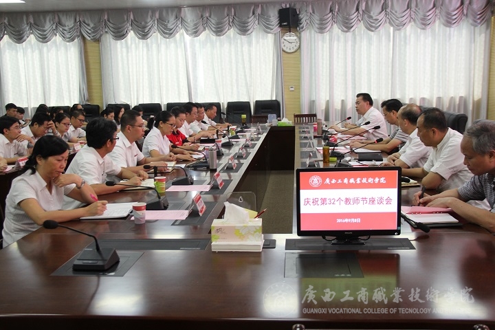 尊師重教是中國(guó)的優(yōu)良傳統(tǒng),早在公元前11世紀(jì)的西周時(shí)期就提出“弟子事師,敬同于父”。2016年9月8日下午2:40,我院在校本部教學(xué)樓2119會(huì)議室召開“甘守三尺講臺(tái),爭(zhēng)做‘四有’教師”——慶祝第32個(gè)教師節(jié)座談會(huì)。自治區(qū)糧食局副巡視員、人事處處長(zhǎng)韋尚英、學(xué)院黨委書記覃武云、學(xué)院院長(zhǎng)、黨委副書記陳杰及其他學(xué)院領(lǐng)導(dǎo)、各部門、各單位代表、教師代表以及各系優(yōu)秀學(xué)生歡聚一堂,共同慶祝教師節(jié)。會(huì)議由學(xué)院黨委覃武云書記主持。