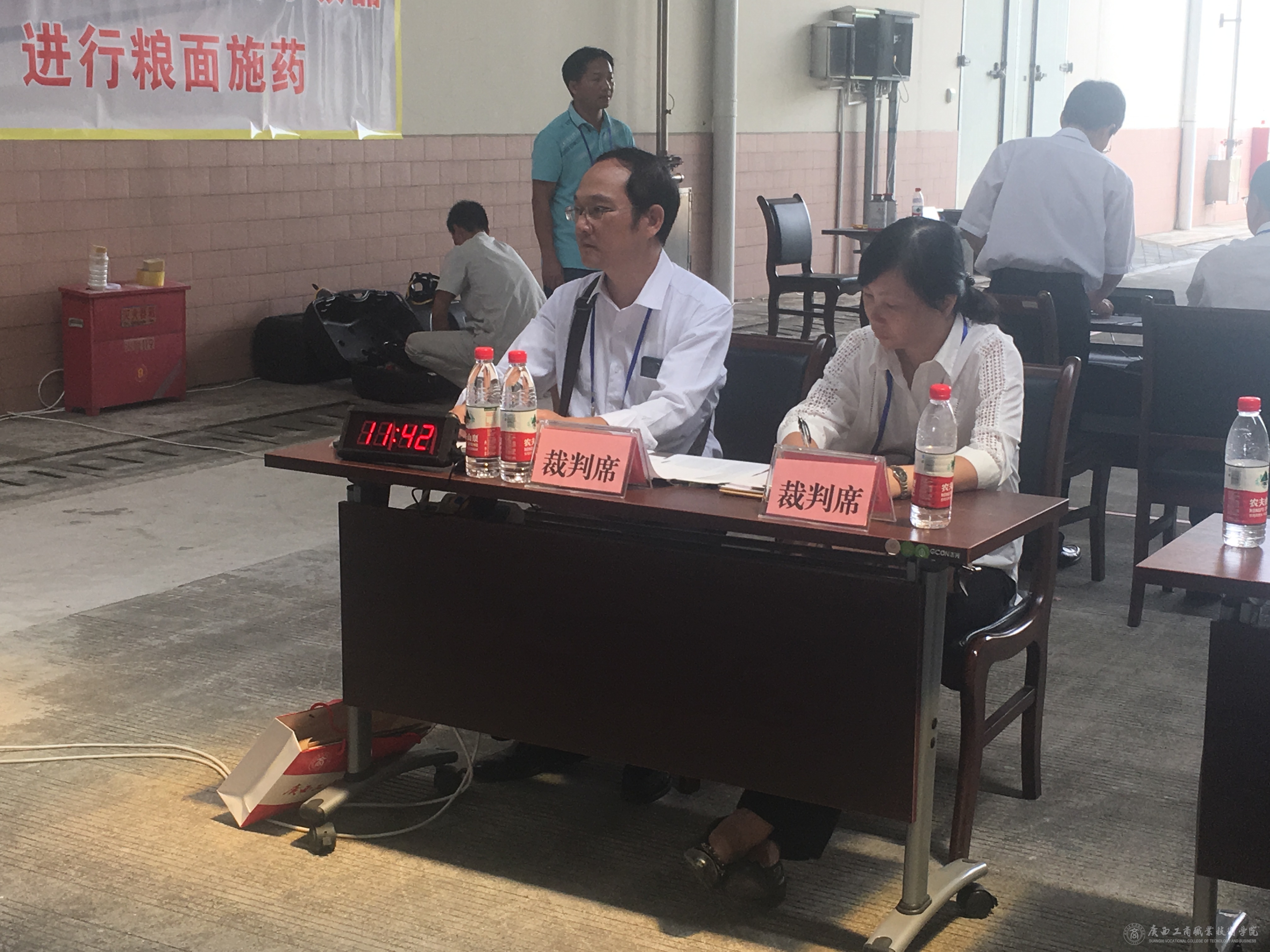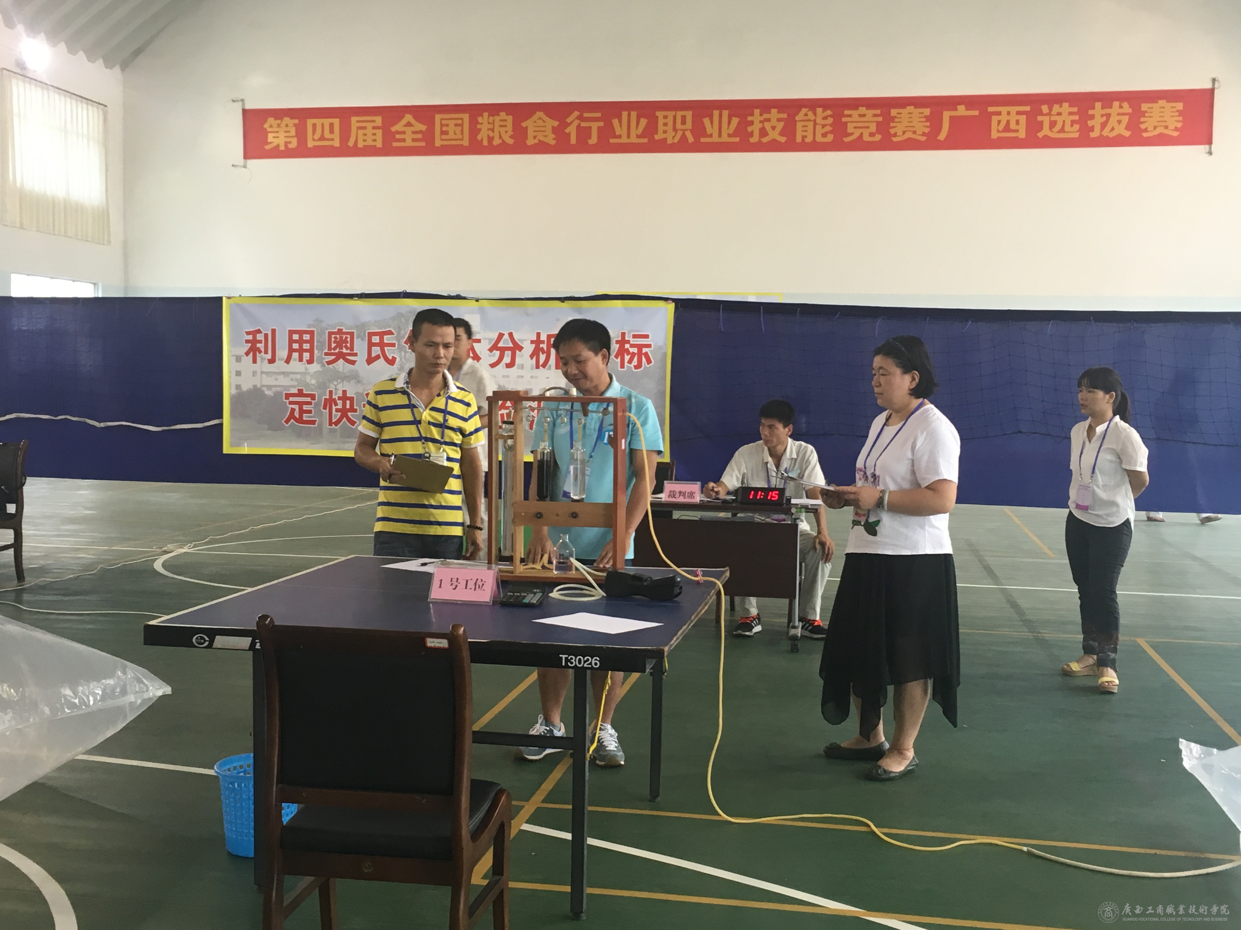 在自治區(qū)糧食局的指導下,自8月底開始,歷時20天的準備,我院譚波教授和廣西壯族自治區(qū)南寧糧食儲備庫榮群利主任工程師一起完成了理論和實操試題出題等相關(guān)工作,為了確保比賽順利開展,譚波教授多次往返糧庫布置比賽場地和準備儀器設備。本次比賽共有來自全區(qū)各地市糧食局和直屬糧庫選派的27名選手參加,9月21日上午,糧油保管員理論知識賽項在南寧飯店順利進行,我院譚波、段小斌和胡筱娥老師參加了監(jiān)考工作;9月22日全天,糧油保管員實際操作賽項在南寧糧食儲備進行,賽項分四個項目,分別是儲糧通風機參數(shù)測定及風機配置合理性評價、計算機糧情檢測與分析、佩戴自給式空氣呼吸器進行糧面施藥和利用奧氏氣體分析儀標定快速氣體檢測儀,我院派出了譚波、謝偉燕、譚惠坤、謝潔、劉邦俊、周劍新和汪波等7名老師擔任考評員負責比賽的裁判工作,高潔、胡筱娥和李梅老師擔任比賽的工作人員。