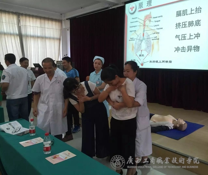 9月27日下午16:00,由學(xué)院工會(huì)舉辦的急救知識(shí)講座及技能實(shí)際操作活動(dòng)在學(xué)院校本部教學(xué)樓2145報(bào)告廳如期舉行。南寧市第八人民醫(yī)院院長(zhǎng)助理紀(jì)家寧一行7人,前來(lái)我院為全院教職工做了主題為“人人學(xué)急救 急救為人人”的專題講座。講座結(jié)束后,南寧市第八人民醫(yī)院的4位主任醫(yī)師和1名護(hù)士一同為大家全程演示和教授海氏急救法與徒手心肺復(fù)蘇術(shù)的實(shí)際操作過程。講座氣氛熱烈,全院教職工興致高昂、積極參與,活動(dòng)取得了良好的效果。