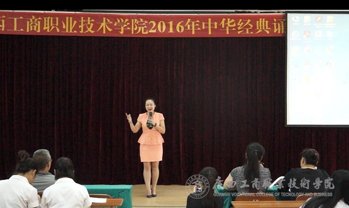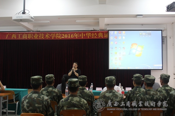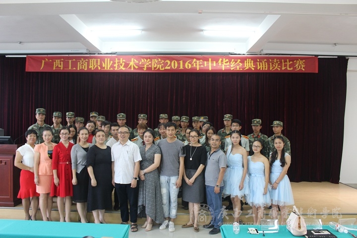 “詩的語言,典藏著五千年悠久的歷史文化;詩的聲音,演繹著不朽歷史的風(fēng)骨鏗鏘”。2016年9月28日下午,廣商院“中華經(jīng)典誦讀”比賽在院本部2145報告廳拉開帷幕。蒙啟成副書記親臨現(xiàn)場與各部門、系部的老師以及受邀到學(xué)院指導(dǎo)軍訓(xùn)的部分教官觀看了本次比賽。