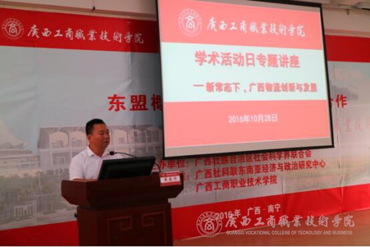 2016年10月28日15:00,經(jīng)管系學(xué)術(shù)講座日活動(dòng)在我院本部教學(xué)樓2145報(bào)告廳開場(chǎng)。此次講座邀請(qǐng)廣西物流與采購聯(lián)合會(huì)副會(huì)長(zhǎng)、廣西物流行業(yè)教育指導(dǎo)委員會(huì)主任委員、廣西物聯(lián)東盟物流規(guī)劃研究院院長(zhǎng)、高級(jí)經(jīng)濟(jì)師李捷作為主講,講座主題為《新常態(tài)下,廣西物流創(chuàng)新與發(fā)展》。經(jīng)管系黨總支書記莫春華、副主任唐燕雯出席本次講座日活動(dòng),系辦主任舒江云、綜合教研室 主任農(nóng)官彬、綜合教研室其他教師和2015級(jí)、2016級(jí)物流專業(yè)學(xué)生參加本次講座。講座由莫春華書記主持。