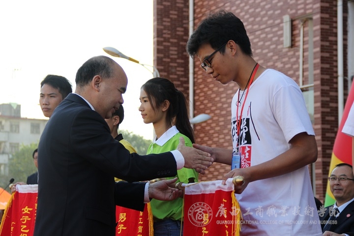 致詞中,陳寧春副院長還代表學院向為本次運動會做出不懈努力的全體師生表示衷心的感謝,向完成了比賽任務的各參賽團隊與全體運動員表示熱烈的祝賀。希望大家將賽場上堅韌不拔的意志,頑強拼搏的精神,高歌猛進的氣概和團結(jié)互助作風繼續(xù)保持發(fā)揚下去,積極投入全民健身運動,經(jīng)常走出寢室,走向操場,養(yǎng)成積極體育鍛煉的良好習慣。不斷提高身體素質(zhì),做到德智體美,全面發(fā)展。最后,他祝全體師生身體健康,工作順利,學業(yè)有成。祝廣商院事業(yè)發(fā)達,越辦越好。并宣布廣西工商職業(yè)技術學院2016年度秋季運動會勝利閉幕。