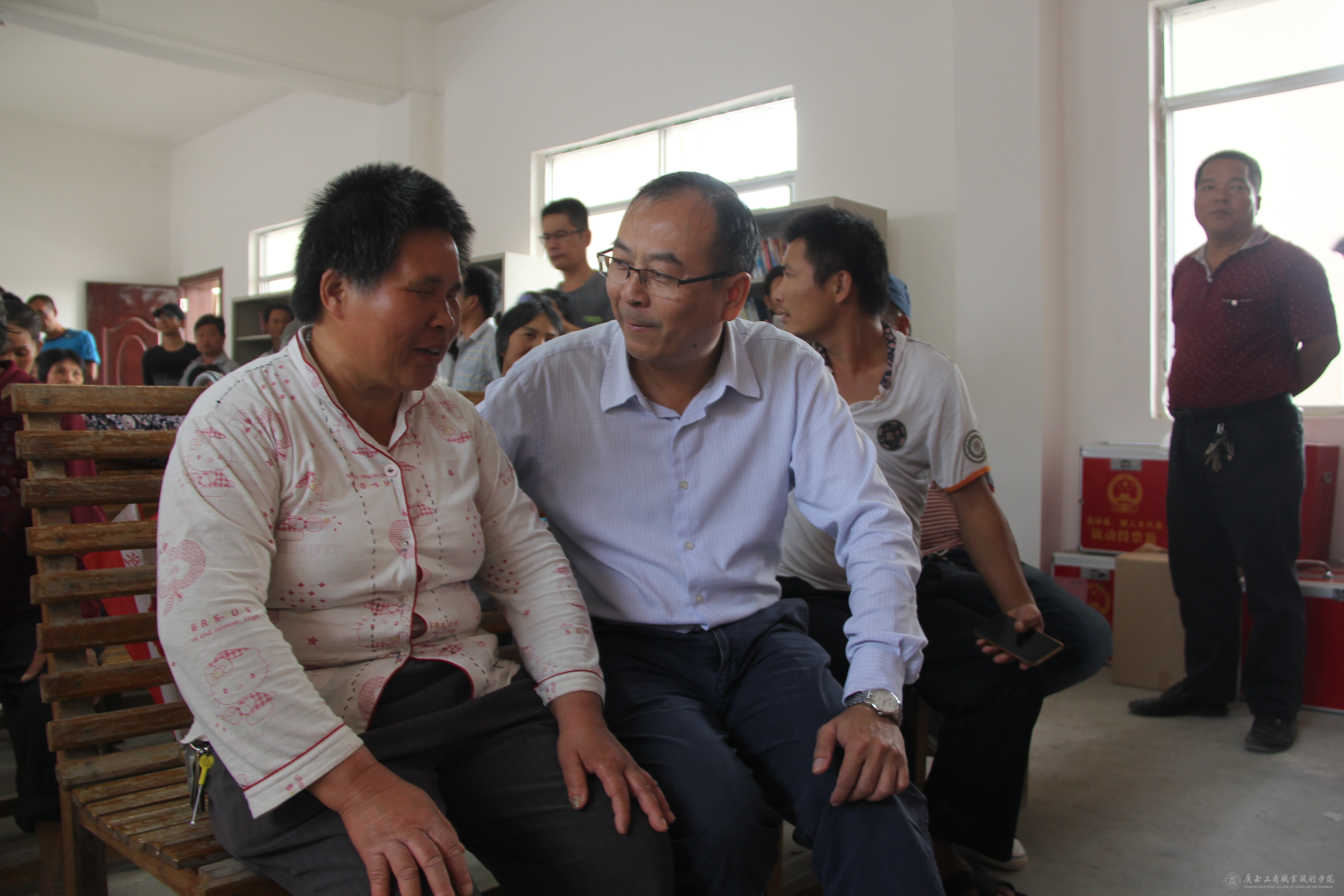 當日下午,工作小組與四樂村村干部及幫扶對象在四樂村村公所召開了結(jié)對幫扶交流座談會。會上,我院掛職四樂村黨支部的第一書記羅北戰(zhàn)同志介紹了當?shù)?/span>扶貧工作有關情況。蒙副書記對北戰(zhàn)同志所做的工作給予了充分肯定,并代表學院向四樂村捐助了一萬元村委經(jīng)費。隨后,工作小組的50位教師向幫扶對象一對一交付了資助金,并到幫扶貧困戶家中開展入戶走訪,對幫扶對象的相關情況開展實地調(diào)研。