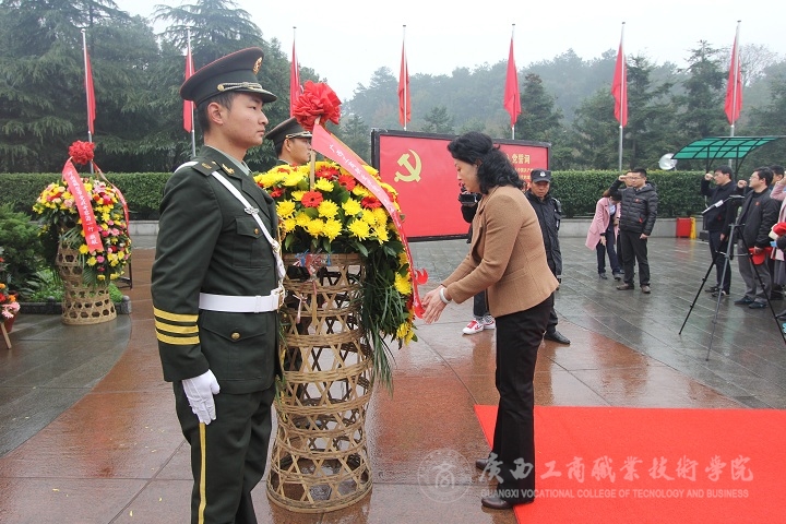 (社科部主任劉萬(wàn)英教授整理花籃緞帶)