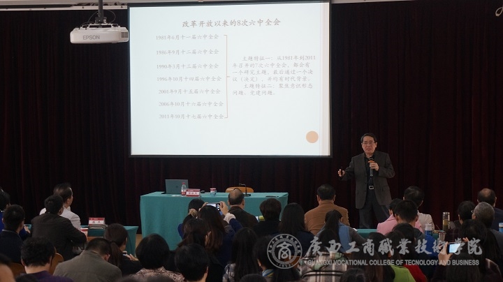 ? ? ? ? 為全面、準(zhǔn)確、深入學(xué)習(xí)貫徹黨的十八屆六中全會(huì)精神,傳達(dá)自治區(qū)第十一次黨代會(huì)精神,2016年12月20日下午,我院邀請(qǐng)自治區(qū)宣講團(tuán)成員、自治區(qū)黨委黨校副校長(zhǎng)、行政學(xué)院副院長(zhǎng)陳林杰教授到我院作學(xué)習(xí)貫徹黨的十八屆六中全會(huì)精神宣講報(bào)告。學(xué)校黨委書(shū)記覃武云主持報(bào)告會(huì)。