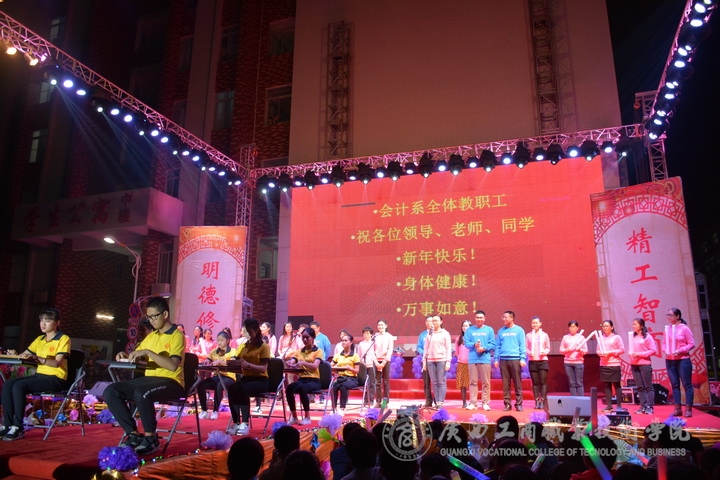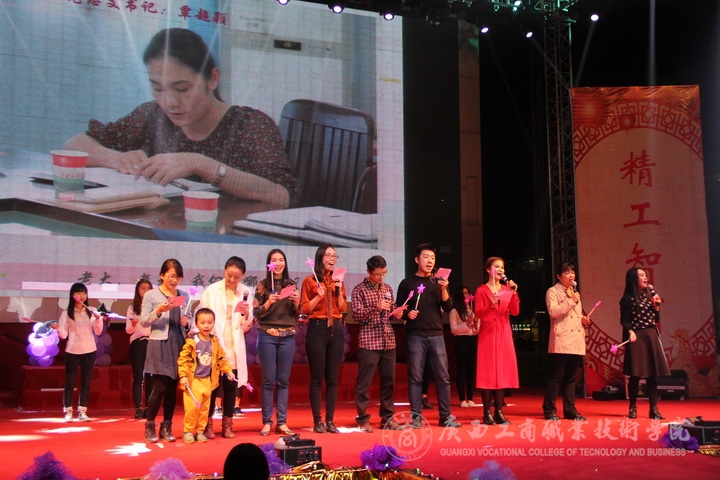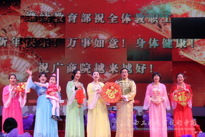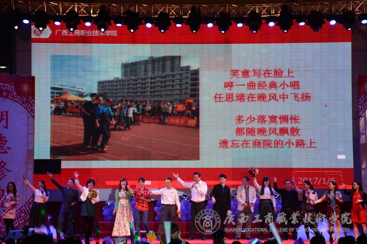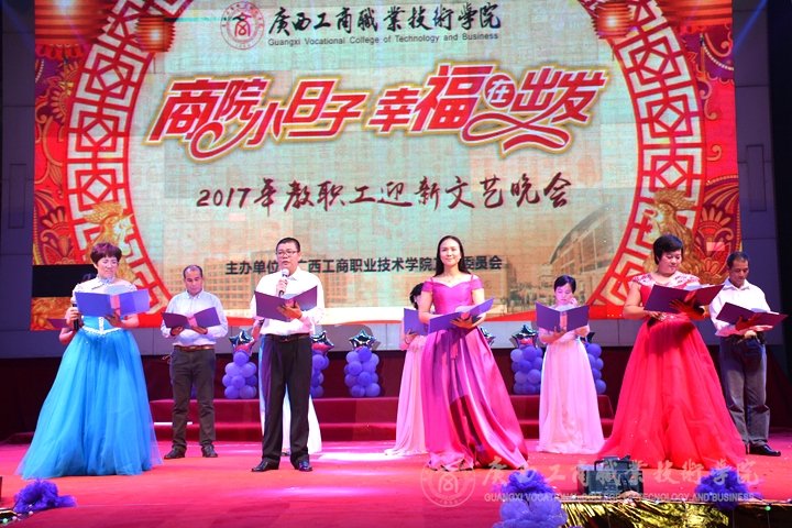 歡欣鼓舞辭舊歲,豪情滿懷迎新年!2017年1月6日晚19時(shí),我院2017年“商院小日子,幸福在出發(fā)”教職工迎新晚會(huì)在校本部LED大屏幕下隆重舉行。全體教職員工及其部分家屬歡聚一堂,輕歌曼舞,喜迎2017年的到來。晚會(huì)由劉佳家、馬力、劉源溢、張東冬四位老師主持,我院領(lǐng)導(dǎo)班子及全院師生觀看了本次晚會(huì),晚會(huì)由廣西工商職業(yè)技術(shù)學(xué)院工會(huì)委員會(huì)主辦。