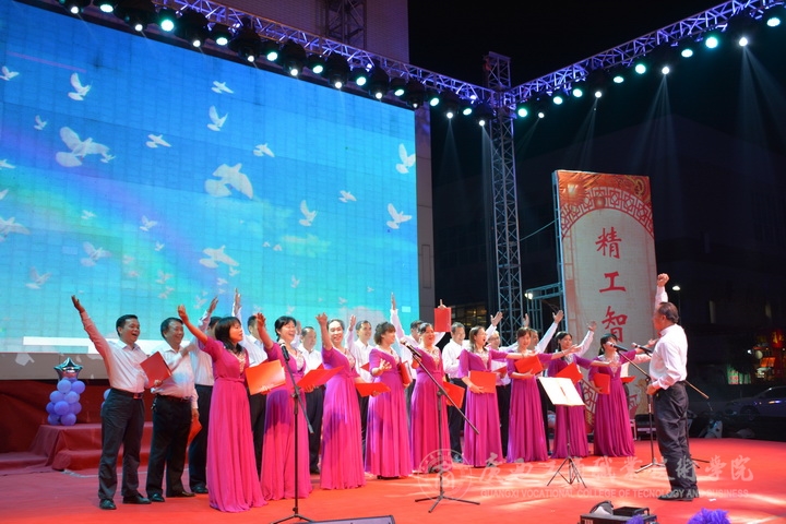 隨著晚會(huì)漸入佳境,繼續(xù)精彩不斷,歌舞不斷。經(jīng)管系分工會(huì)的《從七月開始》,以七月的紅旗為生命高歌;社科部分工會(huì)的《山路像花兒一樣》以多彩的服飾,教師們優(yōu)美的身姿,展現(xiàn)了民族文化的多樣性。架子鼓伴奏下的繼續(xù)教育部工會(huì)小組帶來了趣味舞蹈《桃花朵朵開》;還有黨委學(xué)工處的獨(dú)唱《愛是永恒》歌聲細(xì)膩,更是與觀眾有了精彩的互動(dòng);經(jīng)典是讓人無法忘懷,廣商院老男孩樂隊(duì)將樂器的結(jié)合經(jīng)典歌曲《真的愛你》使臺(tái)下的觀眾也不由自主的唱起來。財(cái)信系工會(huì)帶來的舞蹈《瘋》把握住了爵士特征與街舞風(fēng)格,將時(shí)尚元素完美結(jié)合。悠揚(yáng)的歌聲,歡快的舞蹈,悅耳的演奏,精彩的相聲、鏗鏘有力的朗誦……將整個(gè)晚會(huì)裝點(diǎn)的精彩紛呈。晚會(huì)的最后由歌曲《共筑中國夢(mèng)》歌聲中落下帷幕……
