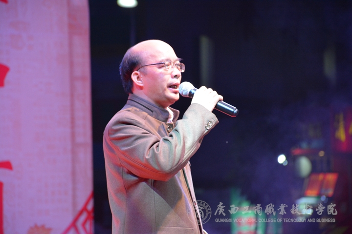 現(xiàn)場(chǎng)華燈璀璨,熱鬧非凡。晚會(huì)伊始,主持人向大家介紹了到場(chǎng)的學(xué)院領(lǐng)導(dǎo)、嘉賓及教師,接著由黨委書記覃武云做新年賀辭,他代表學(xué)院黨委向全體師生致以誠摯的問候和新年美好祝福。