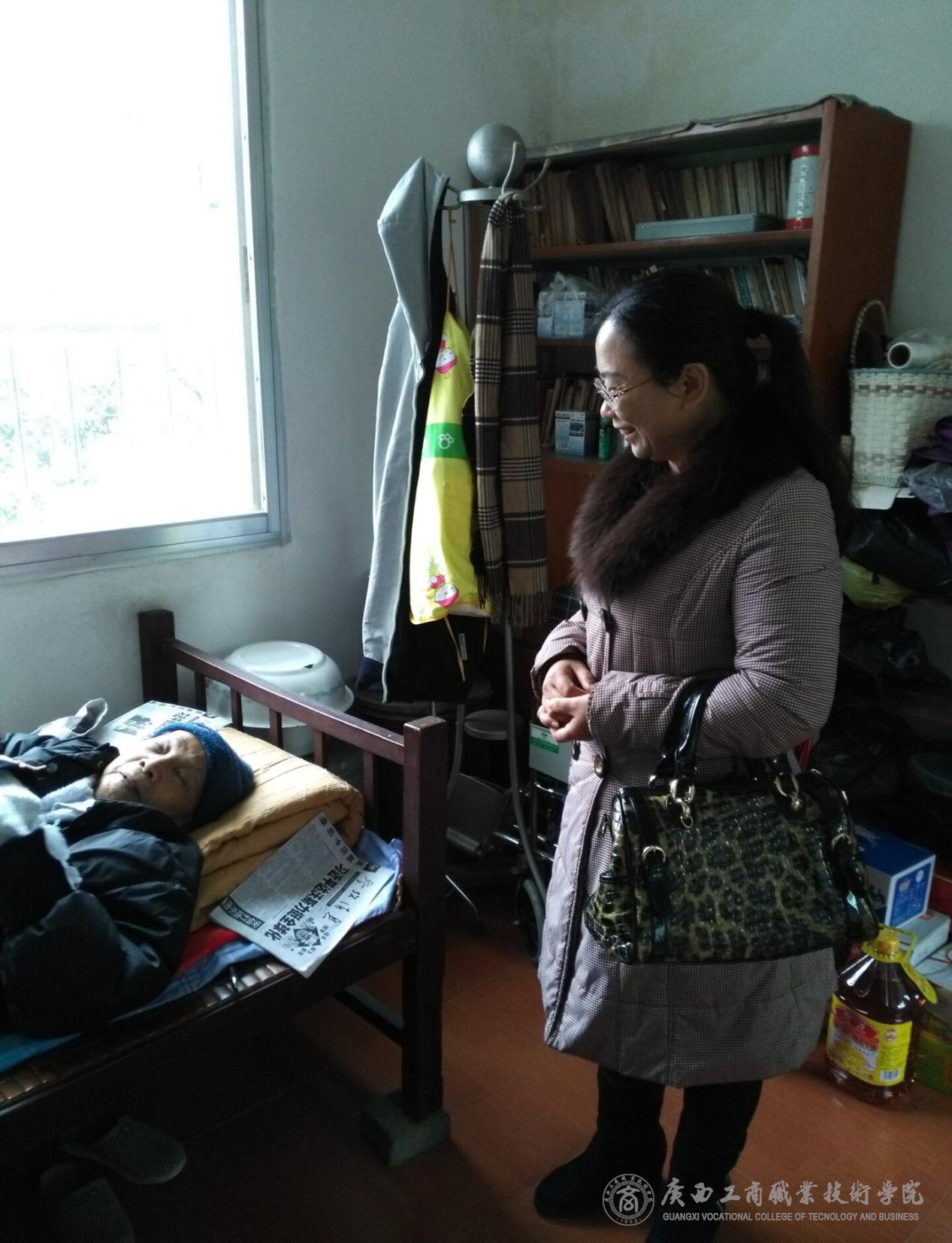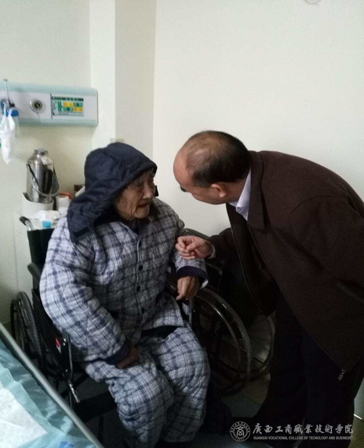 1月18日,自治區(qū)糧食局林愈溪副局長(zhǎng)一行在院黨委書記覃武云的陪同下,看望慰問我院離休老教師巫賽英同志。向巫老師表達(dá)了新年的問候,祝福巫老師新年快樂、身體健康、全家幸福。