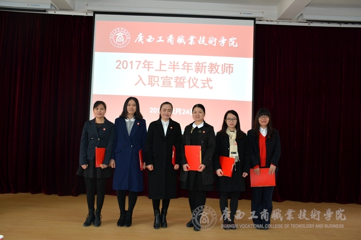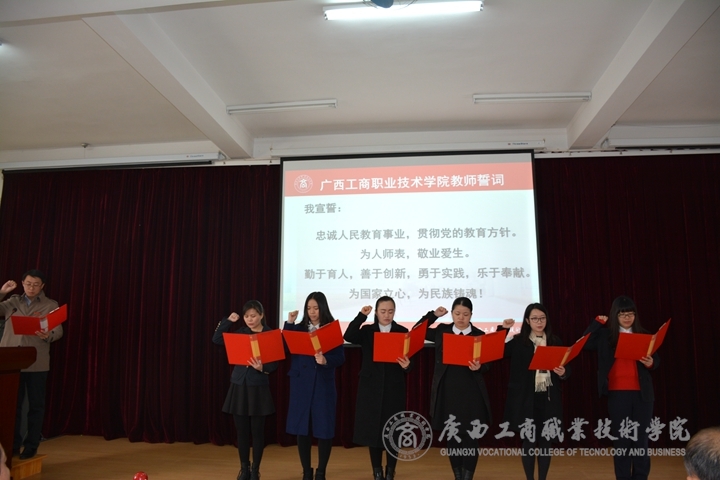 ??????? 第二項(xiàng)議程是舉行2017年上半年新教師入職宣誓儀式,由黨委組織部(人事處)部長(zhǎng)蔣百平同志進(jìn)行領(lǐng)誓,新教師上臺(tái)宣誓并合影留念。