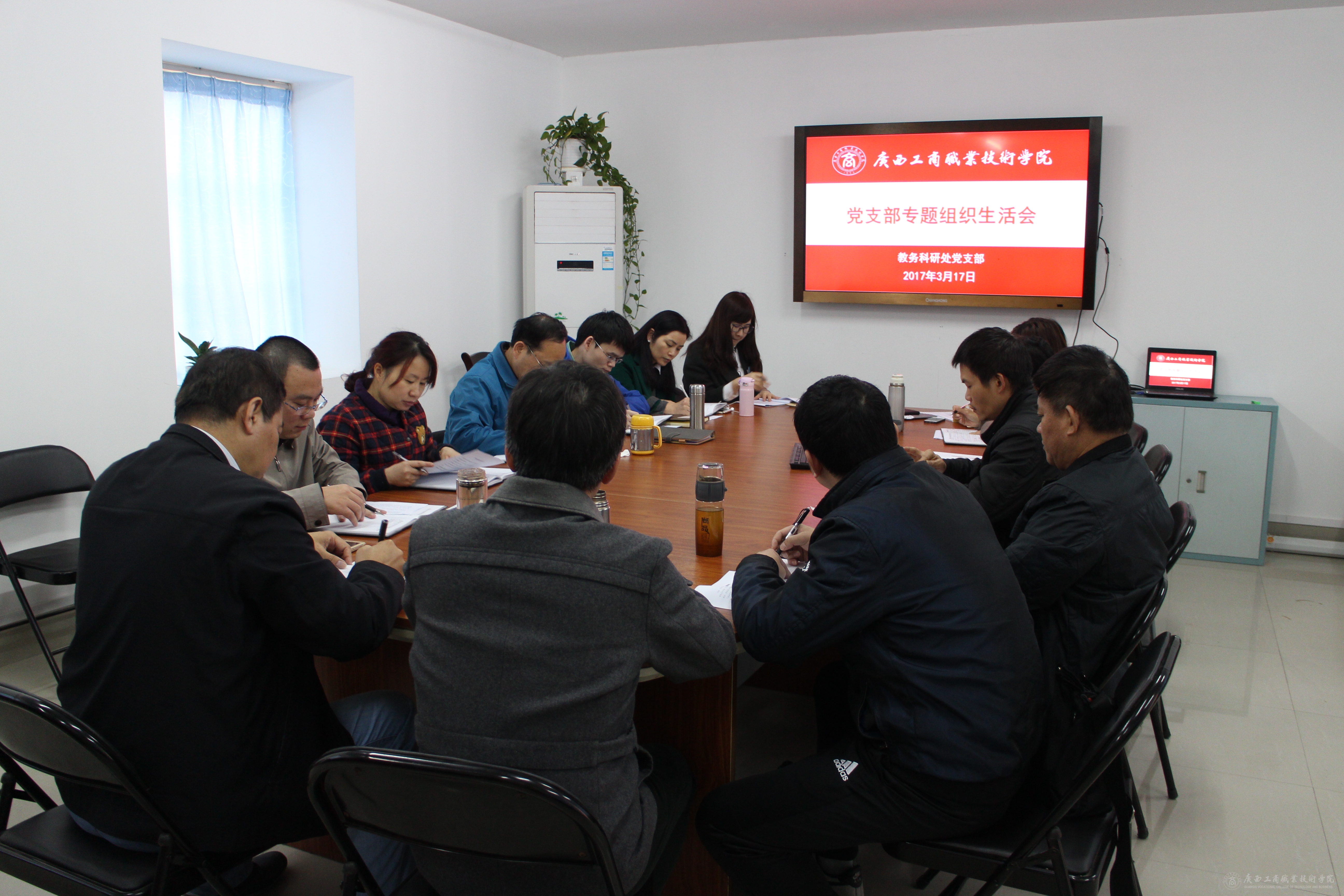 2017年3月17日下午,教務科研處黨支部在學術中心召開“四講四有”專題組織生活會,開展民主評議。會議由教務科研處黨支部書記闕勇平主持,除一名黨員出差請假外支部其余14名黨員參加本次會議,李維副院長作為本支部普通黨員參加了組織生活會。