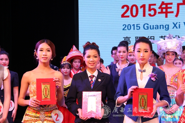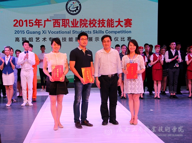 2015年4月29日下午,廣西職業(yè)院校技能大賽禮儀技能賽項在廣西藝術(shù)學(xué)院南湖校區(qū)舉行,在陶曉斌、朱克敏、梁曉霞三位老師的指導(dǎo)下,我院9名同學(xué)代表學(xué)校參加比賽,其中7名同學(xué)分別斬獲女子個人賽一、二、三等獎,男子個人賽兩個二等獎,兩個三等獎。我院還獲得團體賽三等獎的好成績。