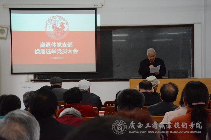 會議分三個階段開展,第一階段由蒙啟成副書記就學(xué)院開學(xué)近期的重大事情向離退休老同志作了通報,就離退休老同志關(guān)心的問題作了詳細的答疑,并給離退休黨員上了一節(jié)生動的黨課。第二階段由上屆離退休黨支部書記郭玉喜主持召開“兩學(xué)一做”專題組織生活會,并組織參會黨員對離退休全體黨員開展民主評議。第三階段由上屆離退休黨支部書記郭玉喜代表退休黨支部做了工作報告,對本屆支部近年來的工作進行了全面的總結(jié),到會黨員一致對黨支部所做的成績給予了充分的肯定。工作總結(jié)報告獲得一致通過后,又根據(jù)《中國共產(chǎn)黨基層組織選舉工作暫行條例》等有關(guān)規(guī)定開展換屆選舉,甘敏軍、江玉坤、紀新來、姚啟諧、 黃偉學(xué)5位同志當選新一屆支委委員,老同志對這一選舉結(jié)果非常滿意。