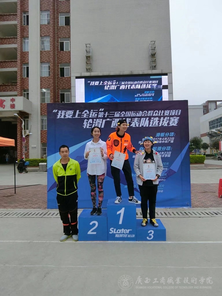 比賽結(jié)束后,主持人為獲獎(jiǎng)?wù)哌M(jìn)行簽約、頒獎(jiǎng)。值得一提的是,我校13級(jí)學(xué)生李欣遙,14級(jí)學(xué)生李蓉榮分別獲得第十三屆全運(yùn)會(huì)廣西代表隊(duì)選拔賽速度過樁第一名和第三名,代表廣西隊(duì)出征2017年第十三屆全運(yùn)會(huì)。本次比賽取得圓滿成功!