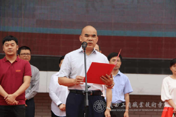 覃武云書記代表學院黨委領(lǐng)導班子對參加職業(yè)教育活動周啟動儀式的各位老師和同學表示熱烈歡迎,預(yù)祝我院職業(yè)教育活動周順利舉辦,并宣布2017年職業(yè)教育活動周正式開幕。