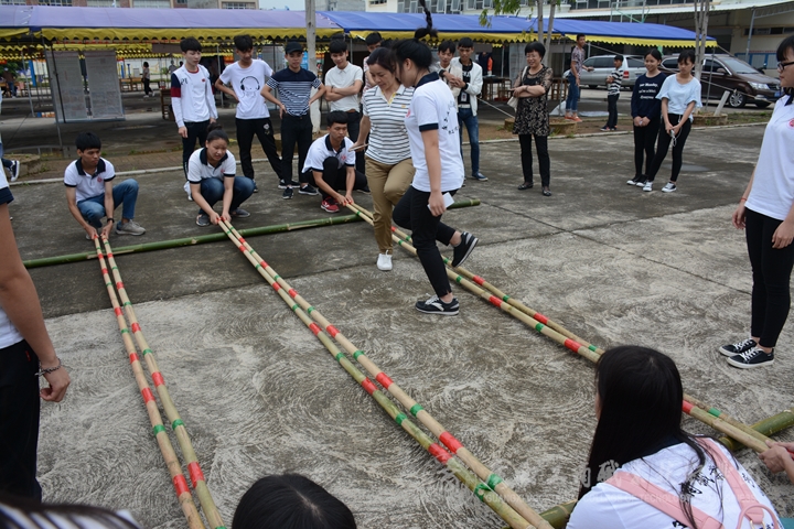 我院師生展示了具有民族傳統(tǒng)特色的竹竿舞,引來了一批觀眾和并贏得現(xiàn)場熱烈的掌聲。主持人還邀請現(xiàn)場觀眾參與互動,一同來體驗竹竿舞的魅力。
