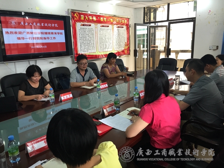 我院繼續(xù)教育部段小斌副主任和廣西財經學院繼續(xù)教育學院自考培訓部副主任李俊芹老師等就自考分數(shù)比例改革后如何提高學生考試通過率以及自考專本銜接畢業(yè)情況等具體業(yè)務問題進行了交流和學習。