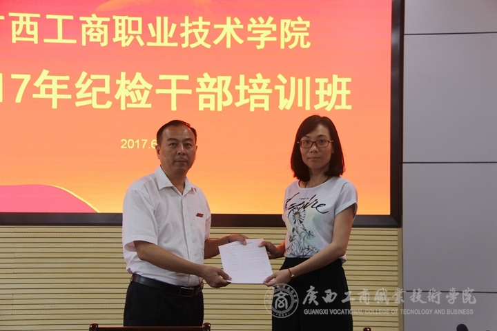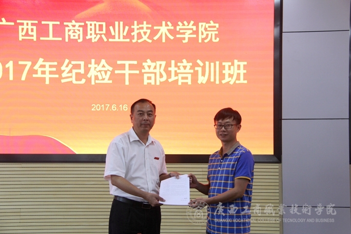 最后學(xué)院全體紀(jì)檢干部與學(xué)院紀(jì)委簽訂了《廣西工商職業(yè)技術(shù)學(xué)院紀(jì)檢干部承諾書》。