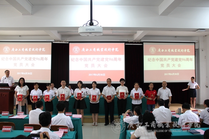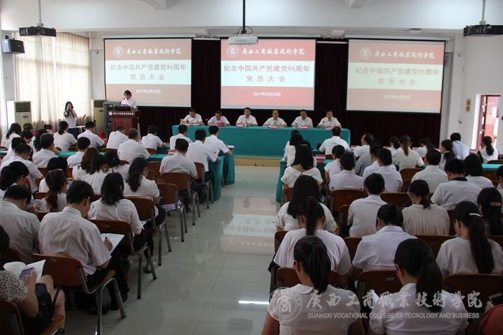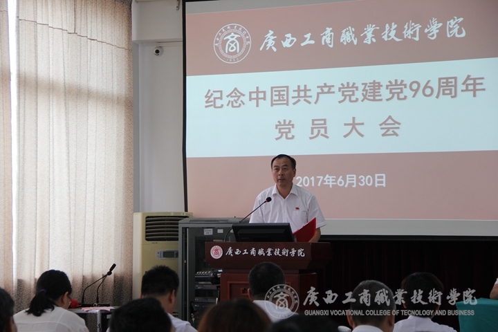 ? ? ? ? 6月30日 上午,學(xué)院召開慶祝中國共產(chǎn)黨建黨96周年黨員大會,全體在職教職工黨員、離退休教職工黨員代表、新入黨學(xué)生黨員參加會議。會議由學(xué)院黨委副書記、紀(jì)委書記蒙啟成同志主持。