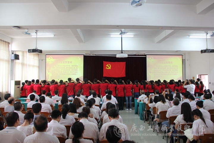 ? ? ? ? 會議伊始,全體起立,奏唱國歌。廣商院新入黨黨員在組織部部長蔣百平同志的領(lǐng)誓下進(jìn)行莊嚴(yán)的入黨宣誓。