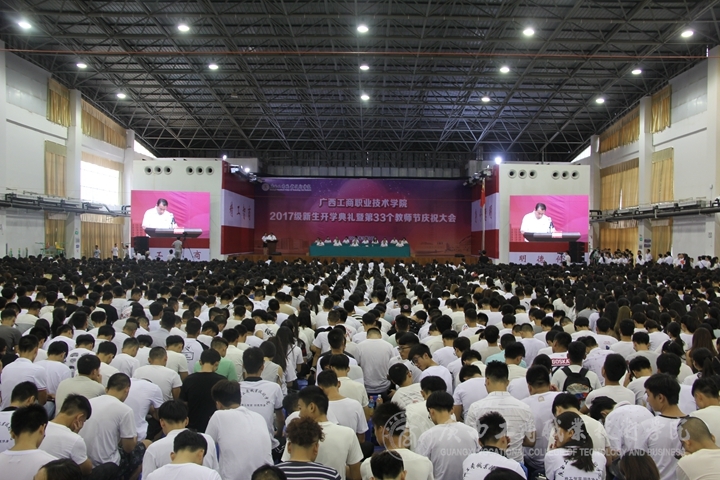 又逢一年開(kāi)學(xué)季,新生迎來(lái)新氣象。2017年9月9日上午,我院于院本部文體館二樓舉行了2017級(jí)全體新生開(kāi)學(xué)典禮暨教師節(jié)慶祝大會(huì)。學(xué)院領(lǐng)導(dǎo)、各部門、各單位主要負(fù)責(zé)人、2017級(jí)年級(jí)主任、副主任、輔導(dǎo)員,2017級(jí)各班班主任以及2017級(jí)全體新生,2016級(jí)學(xué)生代表參加了本次會(huì)議。大會(huì)由學(xué)院黨委副書記、紀(jì)委書記蒙啟成主持,