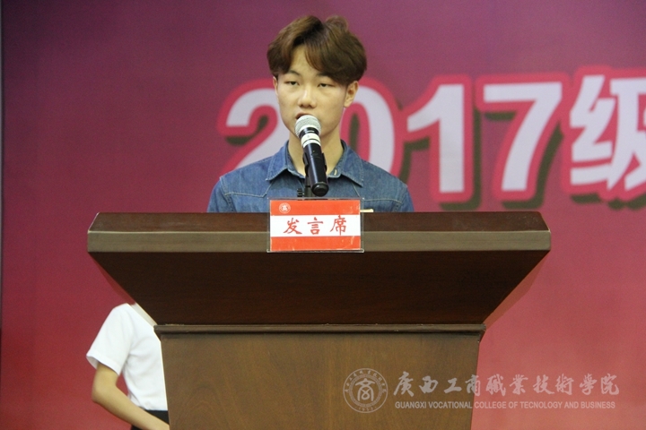 新生代表上臺(tái)發(fā)言時(shí),表示在大學(xué)里,一定會(huì)努力學(xué)習(xí),盡快適應(yīng)大學(xué)生活,樹(shù)立遠(yuǎn)大目標(biāo),為學(xué)院的發(fā)展做貢獻(xiàn)。