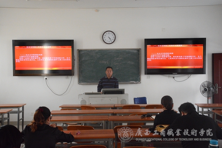 ? ? ? ? 10月18日和25日黨的十九大召開(kāi)和中央政治局常委與記者見(jiàn)面會(huì)的當(dāng)天,學(xué)校組織師生在報(bào)告廳、教室、餐廳等場(chǎng)所收看現(xiàn)場(chǎng)直播,親耳聆聽(tīng)習(xí)近平總書(shū)記的報(bào)告和講話。11月1日,學(xué)院黨委召開(kāi)十九大精神學(xué)習(xí)會(huì),黨委書(shū)記、院長(zhǎng)和學(xué)院領(lǐng)導(dǎo)帶頭學(xué)、帶頭談體會(huì)。黨委書(shū)記覃武云說(shuō),偉大思想源于偉大擔(dān)當(dāng)、偉大實(shí)踐和人民群眾的高度認(rèn)可,黨的十九大報(bào)告是我們黨邁進(jìn)新時(shí)代、開(kāi)啟新征程的政治宣言,是舉旗定向、謀篇布局的奮斗綱領(lǐng),習(xí)近平新時(shí)代中國(guó)特色社會(huì)主義思想是凝神聚力、興黨強(qiáng)國(guó)的行動(dòng)指南,全校要全面準(zhǔn)確地學(xué)習(xí)領(lǐng)會(huì)黨的十九大精神,要堅(jiān)持立德樹(shù)人,全面實(shí)現(xiàn)我院教育事業(yè)內(nèi)涵式發(fā)展。