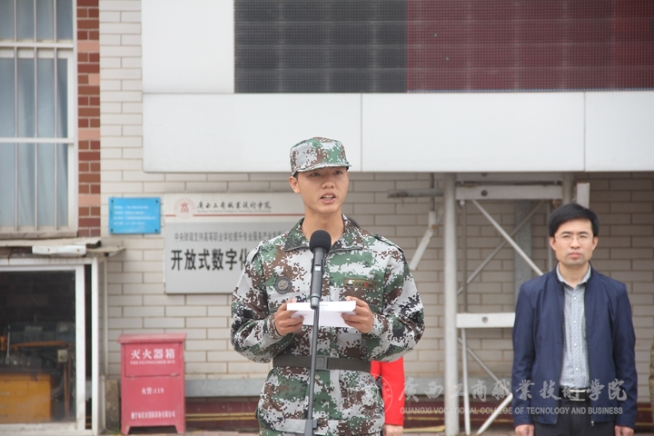 蒙啟成在講話中首先對(duì)大力支持我院軍訓(xùn)工作的武警廣西總隊(duì)直屬支隊(duì)全體教官表示熱烈的歡迎和衷心的感謝,并對(duì)所有參訓(xùn)的同學(xué)提出幾點(diǎn)希望:第一、要高度重視,嚴(yán)格要求。要充分認(rèn)識(shí)參加軍訓(xùn)的必要性和重要性,始終保持飽滿的熱情,嚴(yán)格按照軍訓(xùn)規(guī)范要求完成各項(xiàng)軍訓(xùn)科目;第二、要尊重教官,刻苦訓(xùn)練。軍訓(xùn)教官是開展軍訓(xùn)的導(dǎo)師,一定要給與教官充分的尊重;第三、要遵守紀(jì)律,聽從指揮。同學(xué)們?cè)谲娪?xùn)期間一定要以軍人的標(biāo)準(zhǔn)要嚴(yán)格要求自己,遵章守紀(jì),令行禁止。