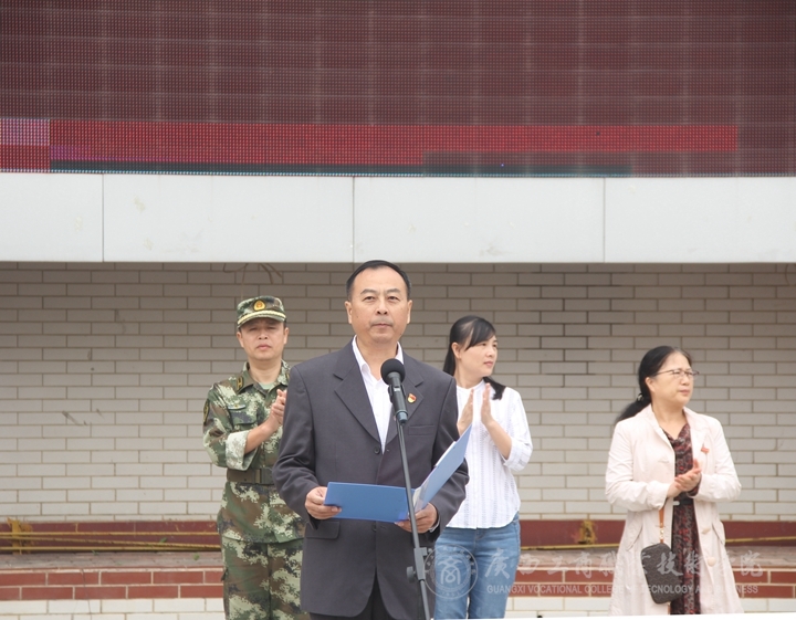 11月6日上午,我院2017級(jí)軍事訓(xùn)練動(dòng)員大會(huì)在校本部LED大屏幕下召開,學(xué)院黨委副書記、紀(jì)委書記蒙啟成和武警廣西總隊(duì)直屬支隊(duì)副大隊(duì)長(zhǎng)閉永勤出席會(huì)議,教務(wù)科研處處長(zhǎng)闕勇平、后勤管理處副處長(zhǎng)梁坤、各系主任、黨總支書記、學(xué)工副主任、2017級(jí)輔導(dǎo)員、班主任、系教學(xué)秘書和2017級(jí)全體新生參加本次動(dòng)員大會(huì)。大會(huì)由學(xué)工部副部長(zhǎng)廖顯圖主持。