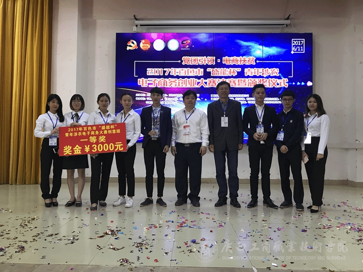 ? ? ? ? ?2017年11月6日,百色市“盛能杯”青年涉農(nóng)電子商務(wù)大賽決賽在廣西幼兒師范高等專科學(xué)院鳴鑼開賽,我院選派了電商16級三支隊伍參賽,并榮獲大賽一、二等獎,包攬了比賽前三名。其中,李富、楊晨鈺、覃彩瑩、盧海瑜團(tuán)隊的《蛋七彩》項目榮獲一等獎和3000元獎金;賓觀華、蒙坤龍、劉小鳳、農(nóng)燕嬌團(tuán)隊的《果果實驗室》項目和牙蘭向、李紹范、馮雪梅、蘇宣瑾、蔡宗霖團(tuán)隊的《果娘娘水果助農(nóng)電商商業(yè)計劃》項目分別榮獲二等獎,2000元獎金。