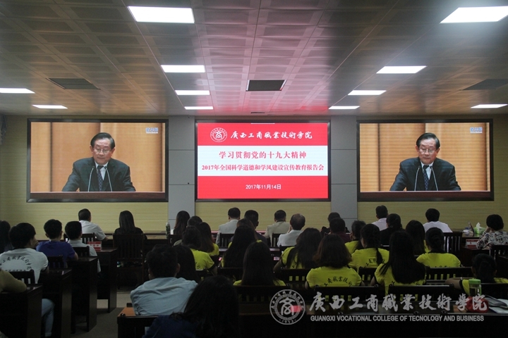 ? ? ? ? 今年的宣講恰逢黨的十九大召開(kāi)之后,所以既是“科學(xué)道德和學(xué)風(fēng)建設(shè)”的宣講,也是學(xué)習(xí)貫徹黨的十九大精神的一次宣講。學(xué)院按照自治區(qū)教育廳文件要求,也及時(shí)組織了收看。學(xué)院紀(jì)委書記、黨委副書記、社科聯(lián)主席蒙啟成,學(xué)院學(xué)術(shù)委員會(huì)委員,教學(xué)工作委員會(huì)委員,社科聯(lián)委員會(huì)委員,教務(wù)科研處、評(píng)估督導(dǎo)室、各系部教師代表及會(huì)計(jì)系、經(jīng)管系、財(cái)信系學(xué)生骨干代表等80多人參加集中收看。
