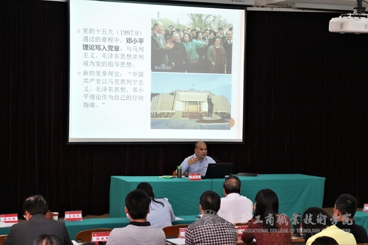 ? ? ? ?為把學(xué)習(xí)貫徹黨的十九大精神持續(xù)引向深入,教育引導(dǎo)廣大黨員牢固樹立黨章意識,2017年11月14日下午,我院在校本部開展學(xué)習(xí)黨的十九大通過的《中國共產(chǎn)黨章程(修正案)》專題黨課,黨課由學(xué)院黨委書記覃武云主講。全體在職黨員、離退休黨支部委員、已申請入黨的教職員工、學(xué)院青年教師黨的基本知識專題培訓(xùn)班學(xué)員、在南寧進(jìn)行頂崗實(shí)習(xí)的學(xué)生黨員、中層以上非黨員領(lǐng)導(dǎo)干部和部分黨外代表教師參加本次黨課學(xué)習(xí)。