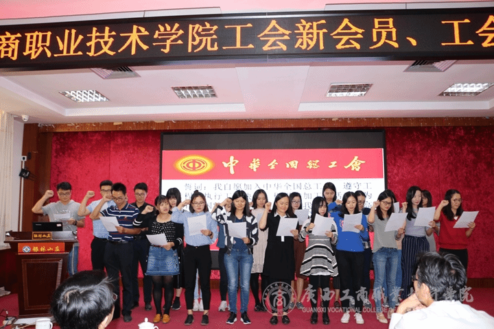 ? ? ? ? 近日,學院工會在南寧市會議中心第二綜合會議室舉辦了新會員、工會干部培訓班暨新會員入會儀式。學院工會主席蒙啟成、常務副主席陳承偉、專職副主席王桂玲及學院工會干部和新會員參加了本次培訓。本次培訓由學院工會常務副主席陳承偉主持,王桂玲副主席代表學院工會向新會員的入會表示歡迎和祝賀,同時圍繞工會的基本職能、會員的權利與義務以及黨的十九大精神、習近平總書記談工會等方面,為全體參訓人員作了深入細致的講解,并就計生工作方面的相關知識,向新會員作了介紹。最后,蒙啟成主席發(fā)表講話,要求全體工會干部要以高度的政治責任感和歷史使命感履職盡責,做好“四種人”, 團結引領廣大職工群眾聽黨話、跟黨走,建功立業(yè), 以實際行動迎接新時代,展現(xiàn)新作為。
