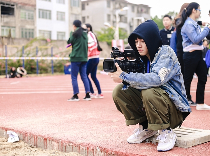 運(yùn)動(dòng)場(chǎng)上還有一些別樣的身影,他們或席地而坐尋找最佳拍攝角度,或拿著紙筆記錄賽況,或?yàn)榱瞬蹲竭\(yùn)動(dòng)員的身影飛奔到最佳位置按下快門。他們是這場(chǎng)賽事的記錄者,為了更好的呈現(xiàn)這一重大賽事而努力著。用相機(jī)定格賽場(chǎng)經(jīng)典瞬間,用攝像機(jī)留住永恒,從清晨到夜幕,只為呈現(xiàn)最精彩的場(chǎng)面,他們是黨委宣傳部新聞中心的記者們。凡是有“熱鬧”的地方總少不了這樣一群奔跑在運(yùn)動(dòng)場(chǎng)上的學(xué)生記者們。