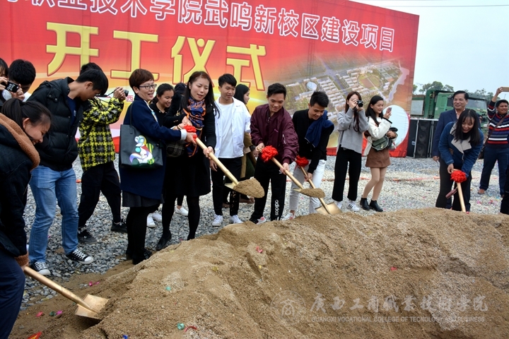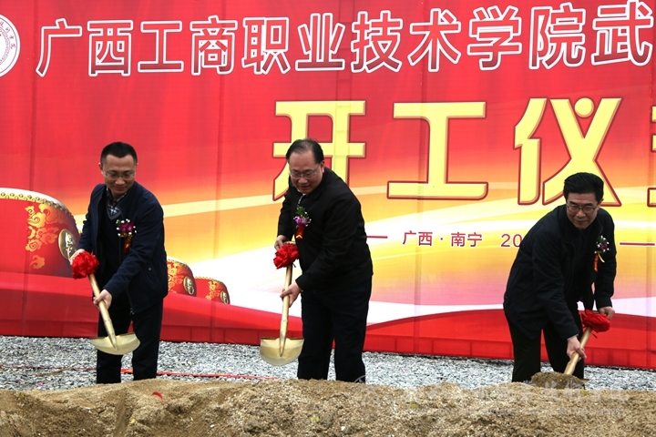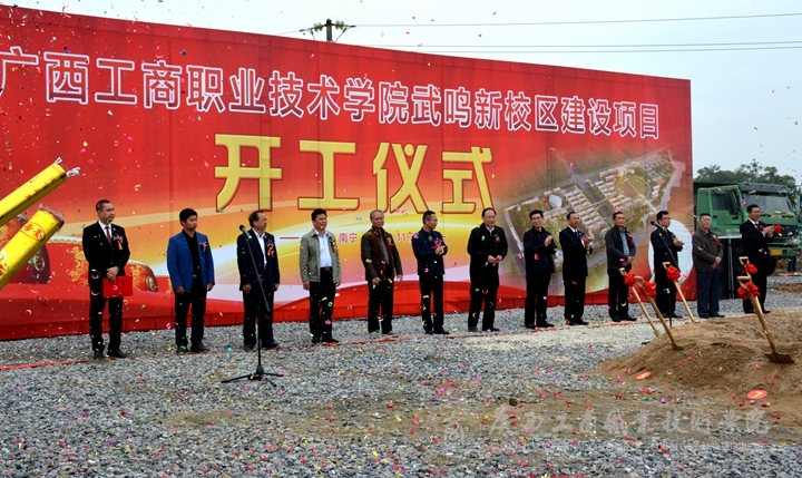 ? ? ? ? 伴隨著喜慶的鞭炮聲和施工機器轟隆隆的響聲,林愈溪副局長宣布“廣西工商職業(yè)技術學院武鳴新校區(qū)建設項目開工”。隨后,出席開工儀式的領導和嘉賓共同為廣西工商職業(yè)技術學院武鳴校區(qū)培土奠基,標志著廣西工商職業(yè)技術學院武鳴校區(qū)建設邁入歷史性時刻。