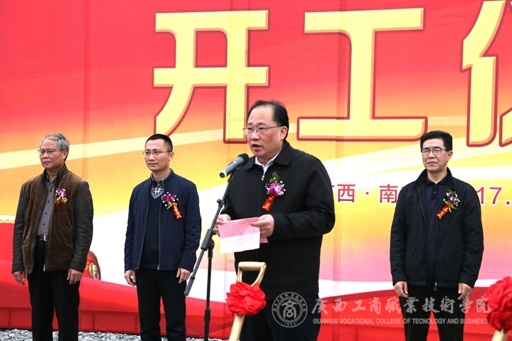 ? ? ? ? 教育廳白志繁副廳長表示,廣西工商職業(yè)技術學院武鳴校區(qū)建設項目的開工建設,是學院實現跨越發(fā)展的新的里程碑,也是我區(qū)職業(yè)教育發(fā)展的大喜事。希望學院能珍惜這個歷史發(fā)展機遇,堅持高起點規(guī)劃、高水平設計、高質量施工,大力推動武鳴新校區(qū)建設,努力建成職業(yè)特色鮮明、人文氣息濃郁、綠色生態(tài)和諧的現代化校園。同時,緊緊圍繞立德樹人,不斷更新理念,加強內涵建設,積極適應全區(qū)經濟社會和教育發(fā)展的需要,進一步突出辦學特色,創(chuàng)新辦學模式,提升教學質量,培養(yǎng)出更多實用型、技能型、技術型人才,把學院打造成為特色鮮明、內涵豐富、質量一流的示范性高職院校。 ?